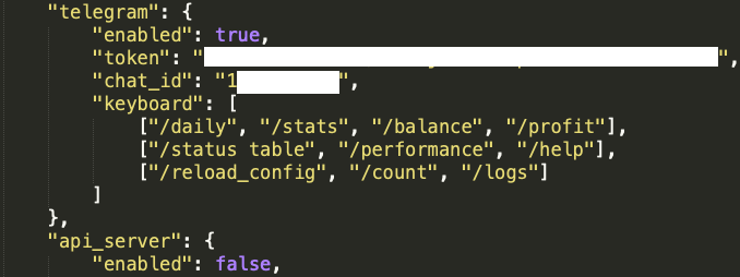 그리고 만든 채팅방의 정보를 freqtrade의 config 파일에 적용하고 freqtrade를 실행하면 된다.