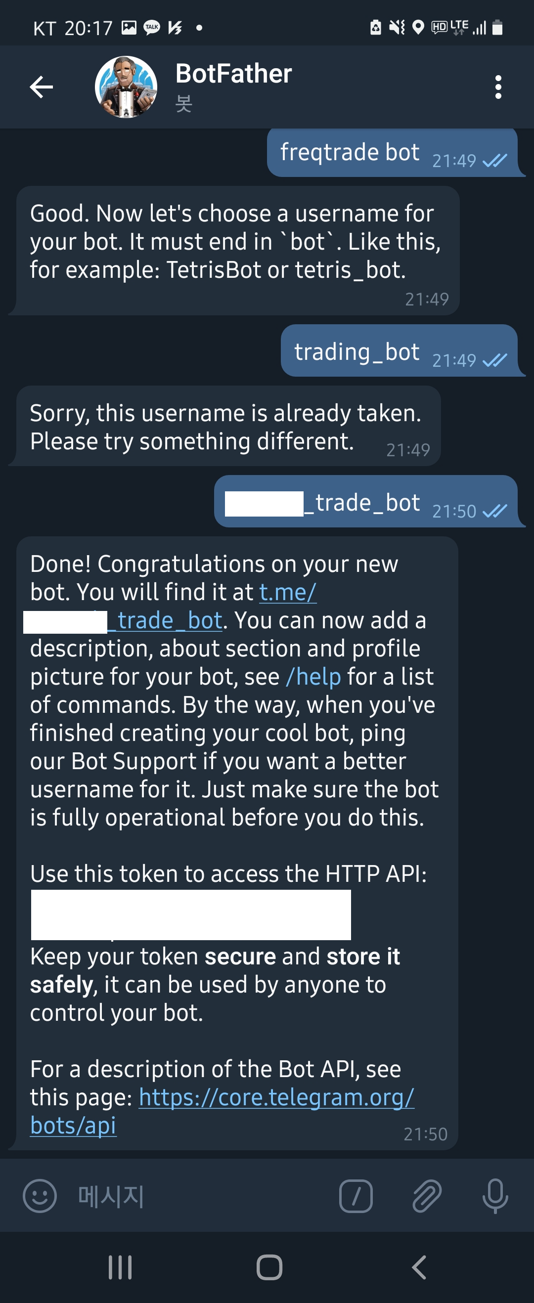 - t.me/user_name 으로 생성되는 링크를 눌러 대화창 오픈